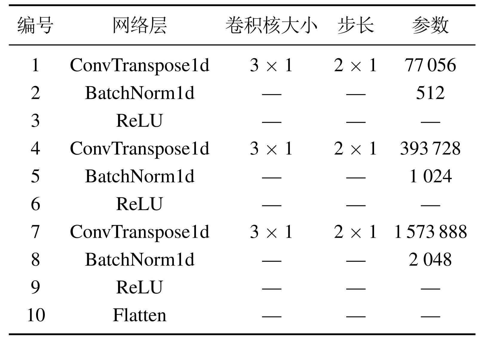 表2生成器模型结构