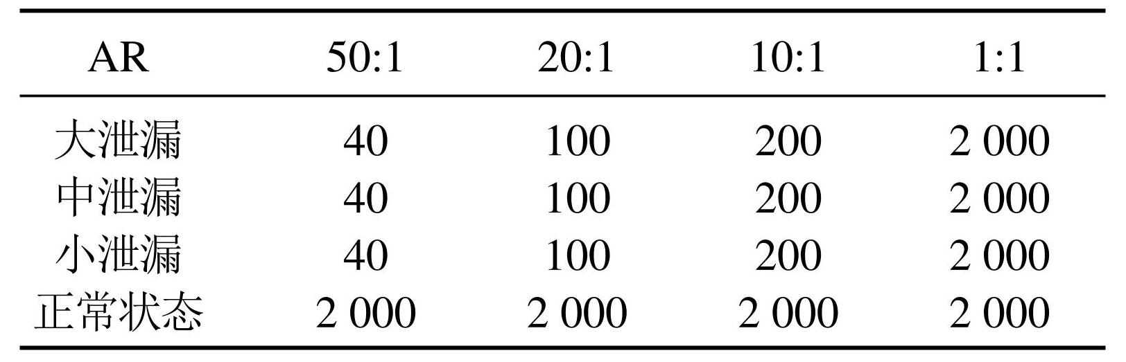 在实验中,正常状态的管道数据量为2 000,其他健康状态的数据量随AR变化. 数据集的详细信息如表3所示.