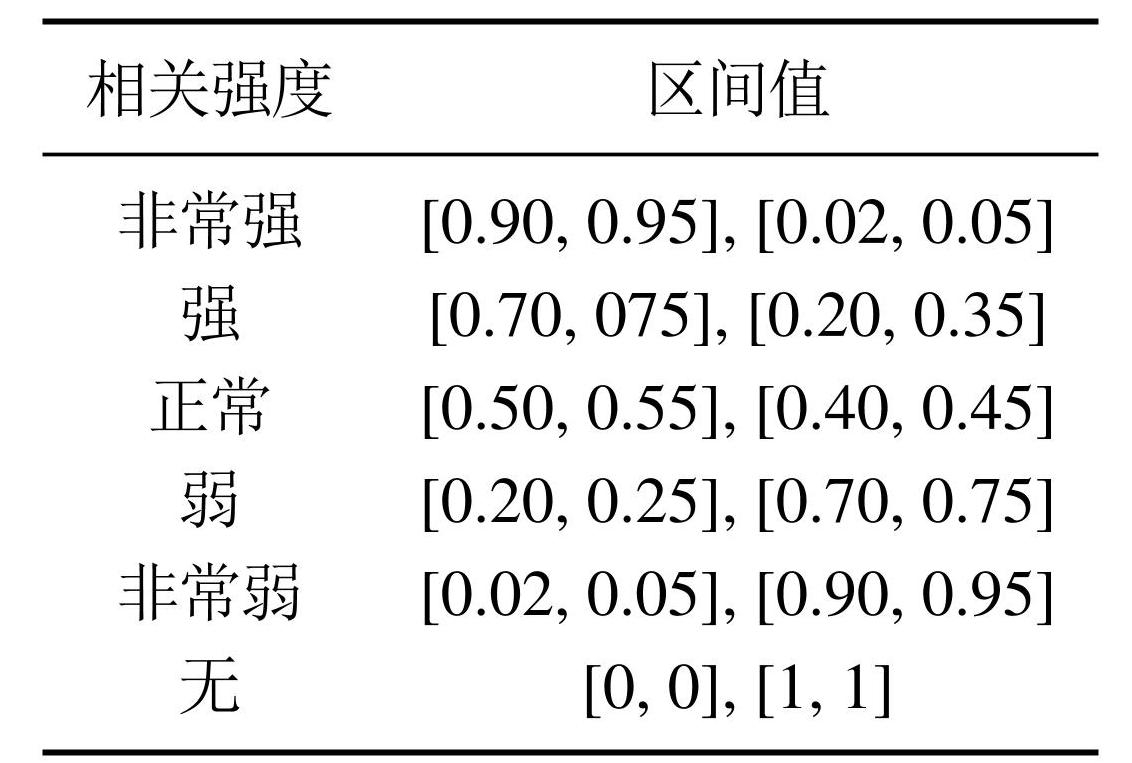 式中分别表示节点vi和vj的功能相关程度区间和非相关程度区间.