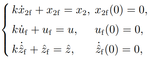 注 1 参数α4是因为使用交换引理产生的. 因此,滤波常数k一般应设置的较小. 另一方面,k定义了低通滤波器的带宽,足够大才可以滤除高频分量,同时最大限度地减少引入的延迟. 因此,应设置合适的滤波器常数.