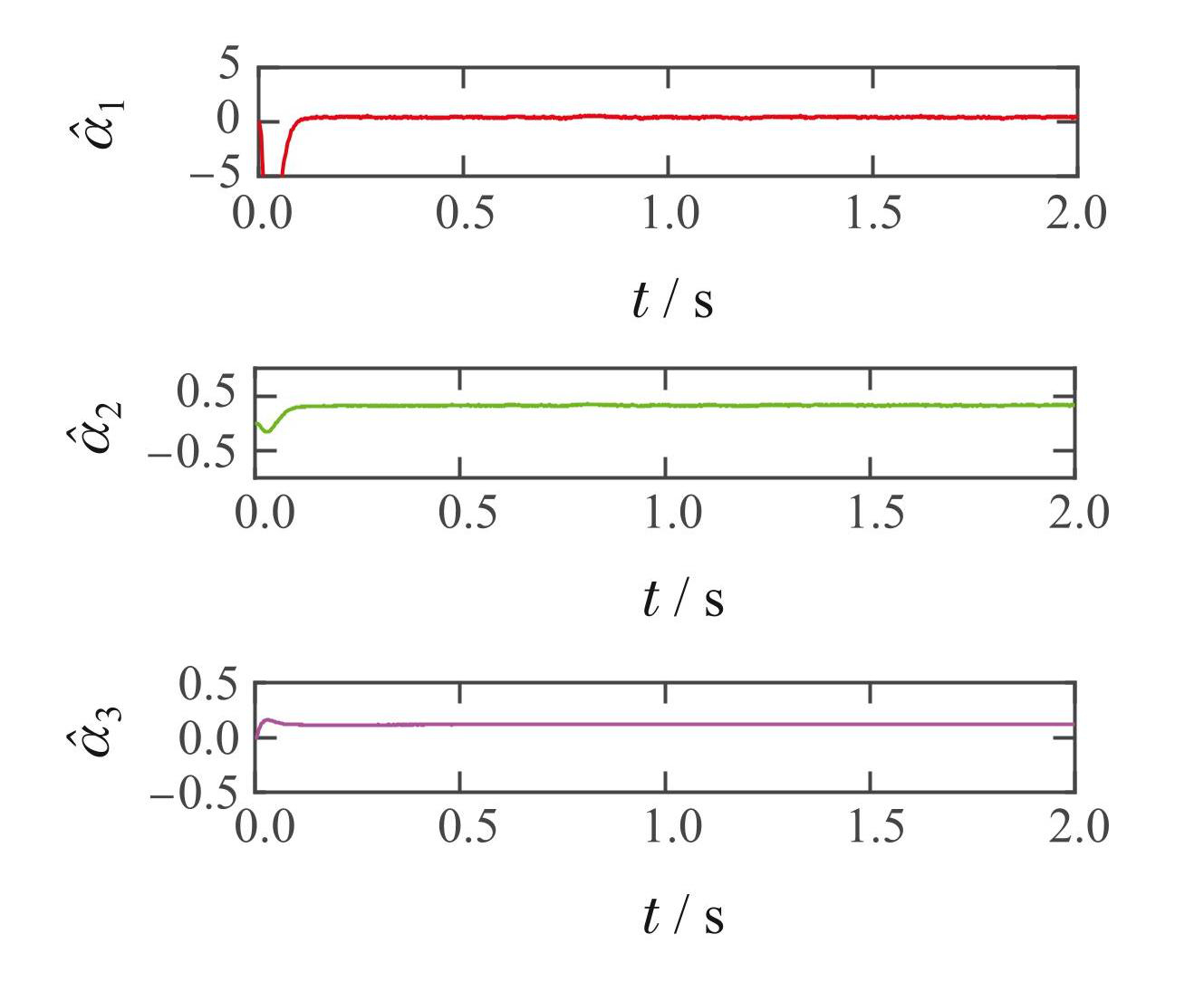 从图6(a)中可以看出,估计的参数收敛到真实值. 从图6(b)中可以看出,当负载扭矩发生突然变化时,估计的参数表现出振荡,然后再次收敛.