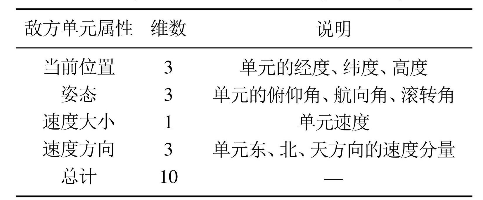 智能体i的局部观测oi为当前单元M、友方单元 T、敌方单元E实体信息的集合. 对于当前单元、友方单元和敌方单元,单个实体信息详情如表1–2所示.
