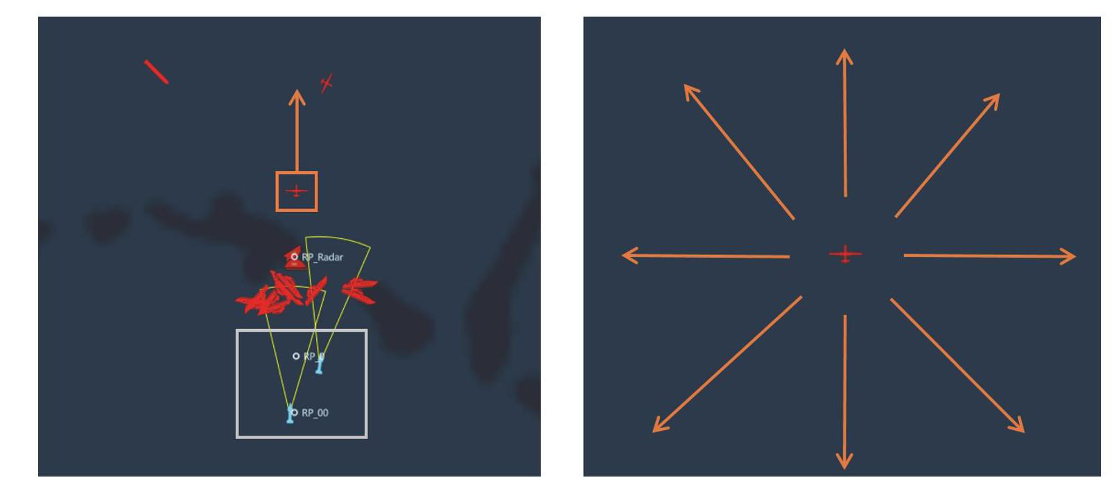 本文设计了包括抱团进攻、分散进攻、诱饵引诱等共计10种专家策略供智能体训练,提升智能体博弈水平. 不同专家策略区别主要体现在导弹火力分配方式、编队类型和进攻路线上,如图3所示.