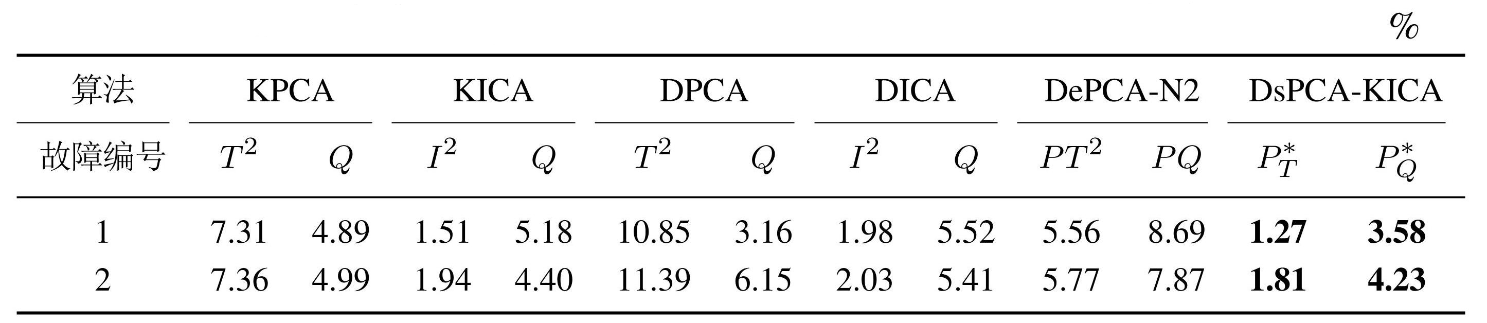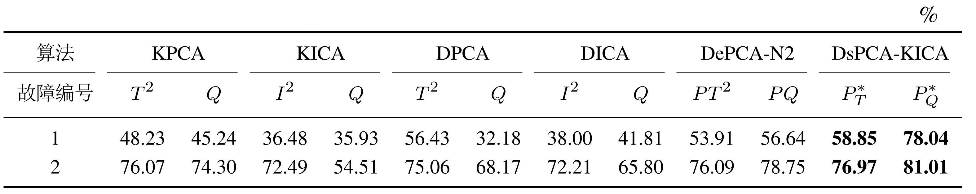 1)针对过程变量的混合相关性,DsPCA-KICA 方法兼顾过程数据的多种特性,并充分利用过程数据的高阶统计特性,构建分层级联特征提取模型深入挖掘过程数据中的隐藏特征;