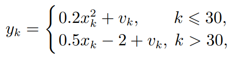 由于该模型具有强非线性和双峰的特点,对其进行状态估计具有较高的难度,所以被广泛应用于验证粒子滤波的有效性 [22] . 它的系统模型描述如下: