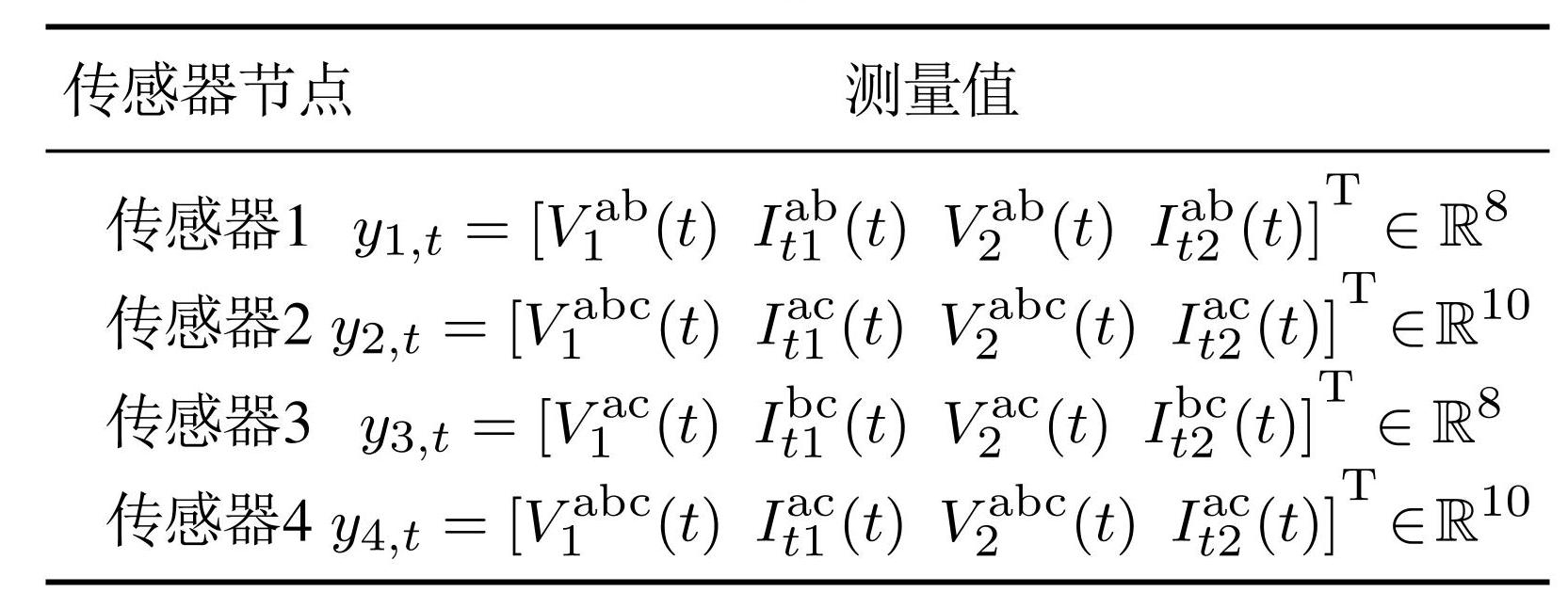 其中在电力系统中,通常测量三相交流信号的至少两个分量,因此测量矩阵依赖于传感器节点i所选择的测量分量.