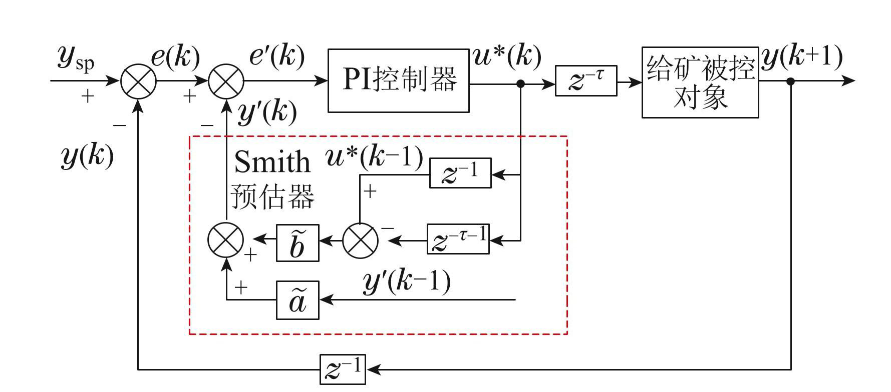 为了解决复杂给矿系统的时延问题,文献 [4] 提出 Smith预估补偿控制方法,改善给矿回路的控制效果,但Smith预估器需要精确辨识模型参数. 文献 [5] 提出 Smith预估补偿与模型参考自适应相结合的控制方法,降低了对精确模型的依赖. 文献 [6] 利用李雅普诺夫理论设计了自适应控制器,补偿Smith预估模型和被控对象之间的偏差,改善了控制效果,但增加了系统时变性.