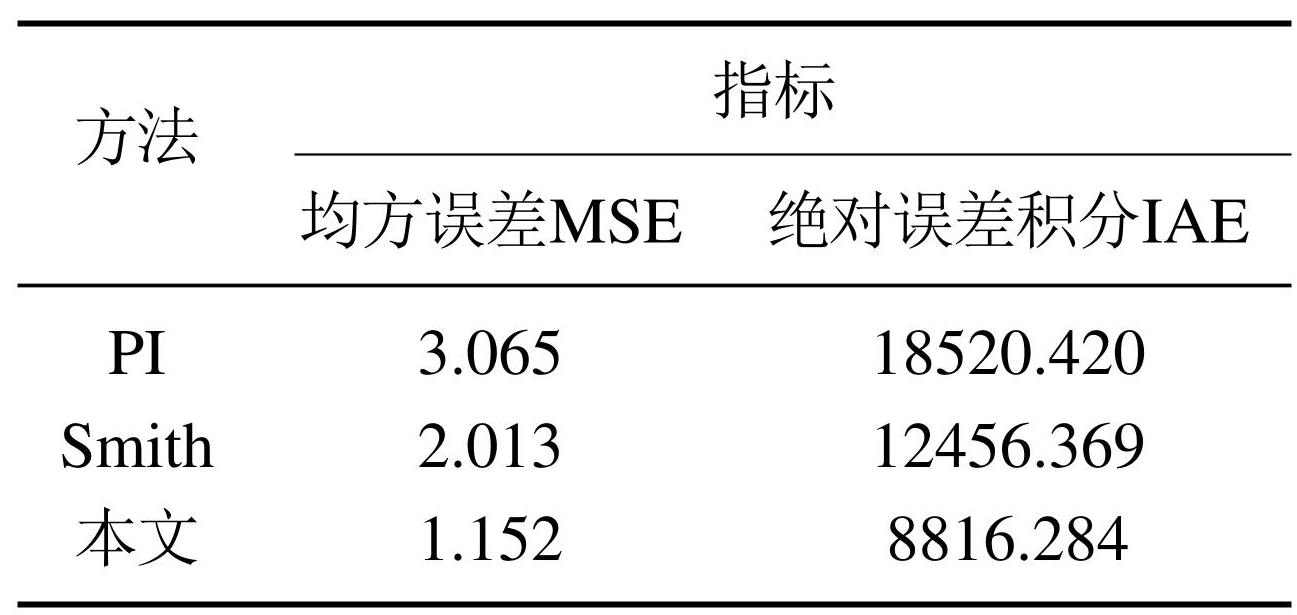 从图6–8中可以看出,采用本文方法时,系统输出能够稳定跟踪设定值,且输出的波动较小,Smith控制跟踪略有滞后,PI控制效果较差.