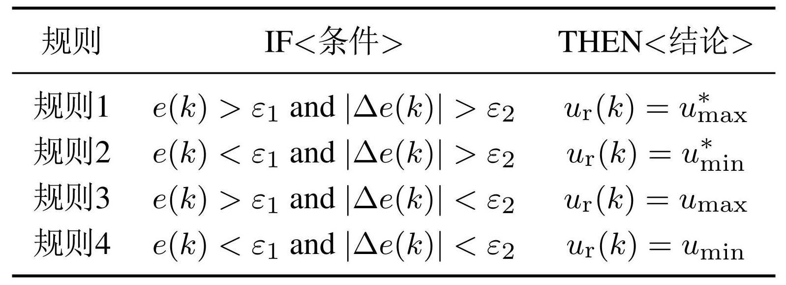 当给矿量y(k)超出目标区间范围时,采用“IF<条件>THEN<结论>”规则对给矿过程进行控制,如表1所示,条件中的变量为e(k)和∆e(k),限定值为ε1和 ε2,结论中的变量为频率ur(k),其限定的上界和下界分别为