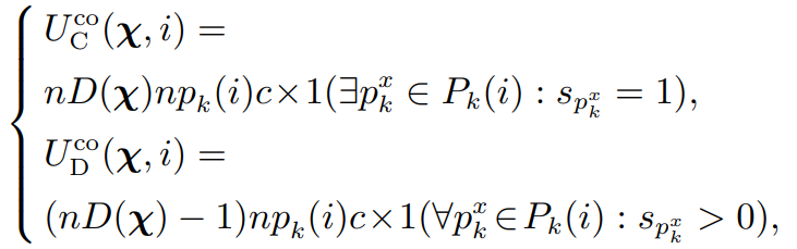 其中表示联盟中选择策略D的博弈者数量.若则来自联盟的影响为0. 用Ui表示个体i忽略联盟收益的效用,即