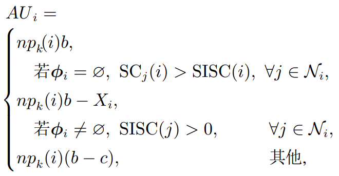 1)当期望为则SISC(i)<0,有−ai为最佳响应,假设Ui =AUi,则ai =D 并且 SISC(i)>0,这与ϕi =∅ 相悖,此种情况不存在,那么有Ui <AUi;