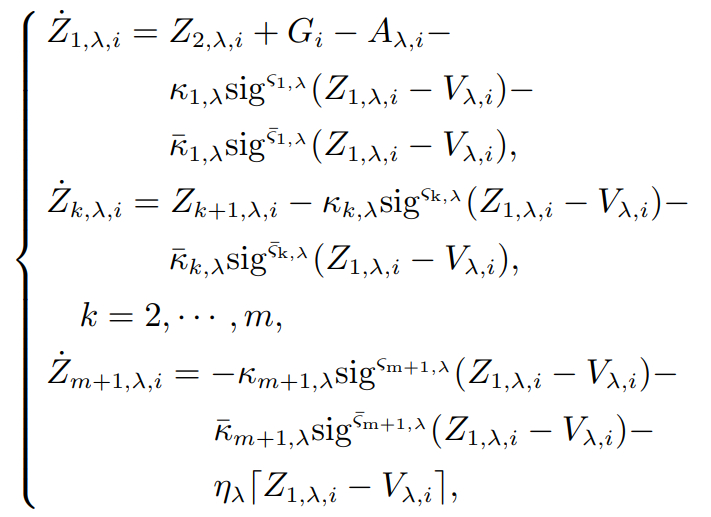 根据引理4,设计如下固定时间观测器,用于表示 ATλ,i: