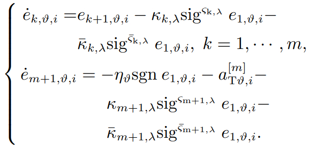 由引理4可知,e1,ϑ,i,k = 1,· · ·,m + 1在固定时间内收敛至0,收敛时间满足