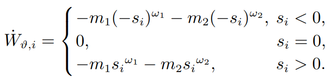 由式(51)可知: 式(49)除si = 0点外是连续可微的. 计算si = 0处Lyapunov函数导数的左、右极限