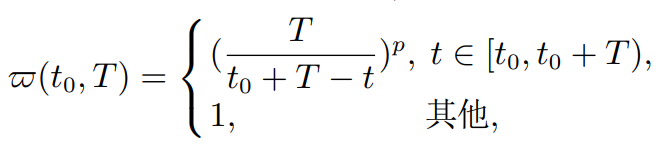 式中: t0表示系统运行的初始时刻,系统的动力学模型将在第3.1节给出; T表示系统达到稳定的预设时间,要求其中Ts是信号处理、计算和信息传输、通信所需的时间周期; ϖ(t0,T)表示一个与 t0 和T相关的连续函数,并且在时间区间[t0,t0 + T)上是严格递增的; 同时,p是一个用户可以选择的大于2 的标量.