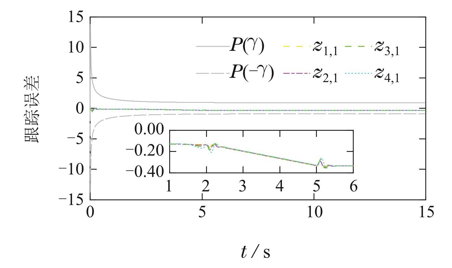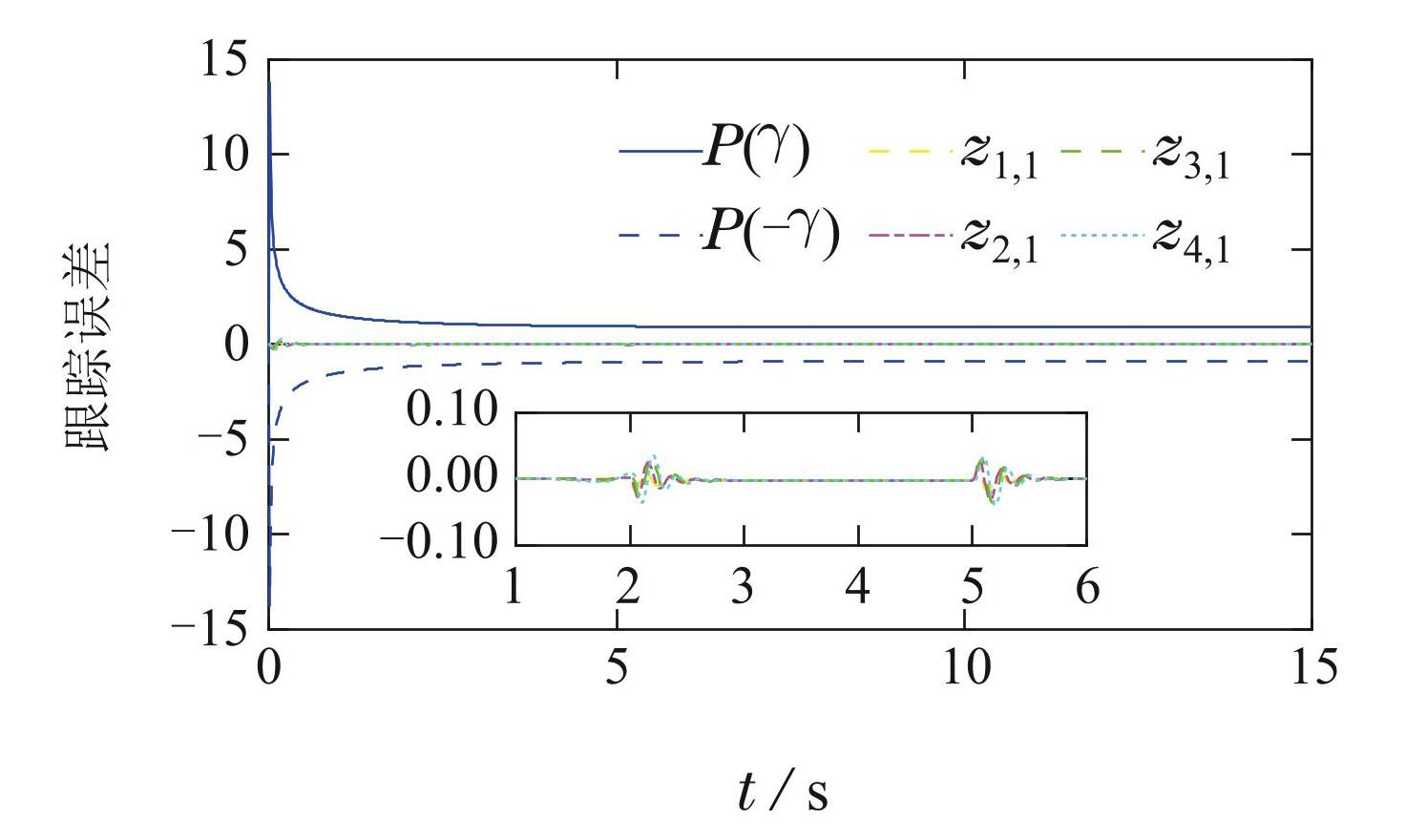 图9带有预设性能的车辆队列系统跟踪误差