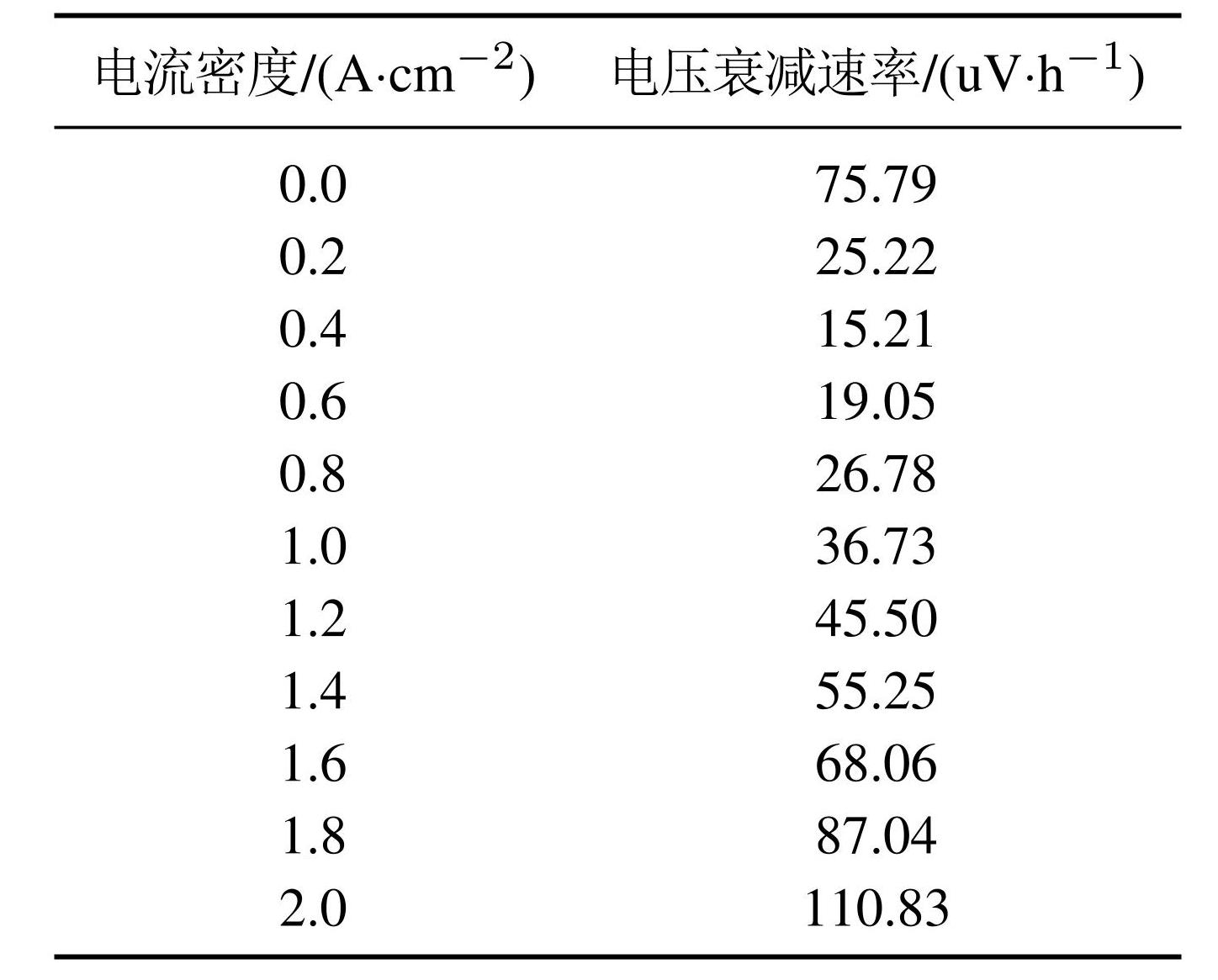 表1各电流密度点下电压衰减速率