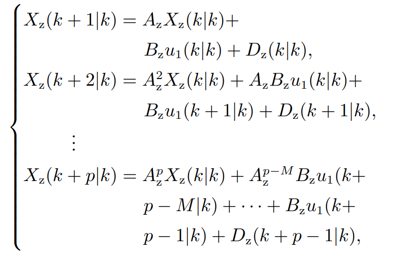 其中∆t表示为采样时间. 对离散化式(5)进行模型预测p个步长可以得到如下公式: