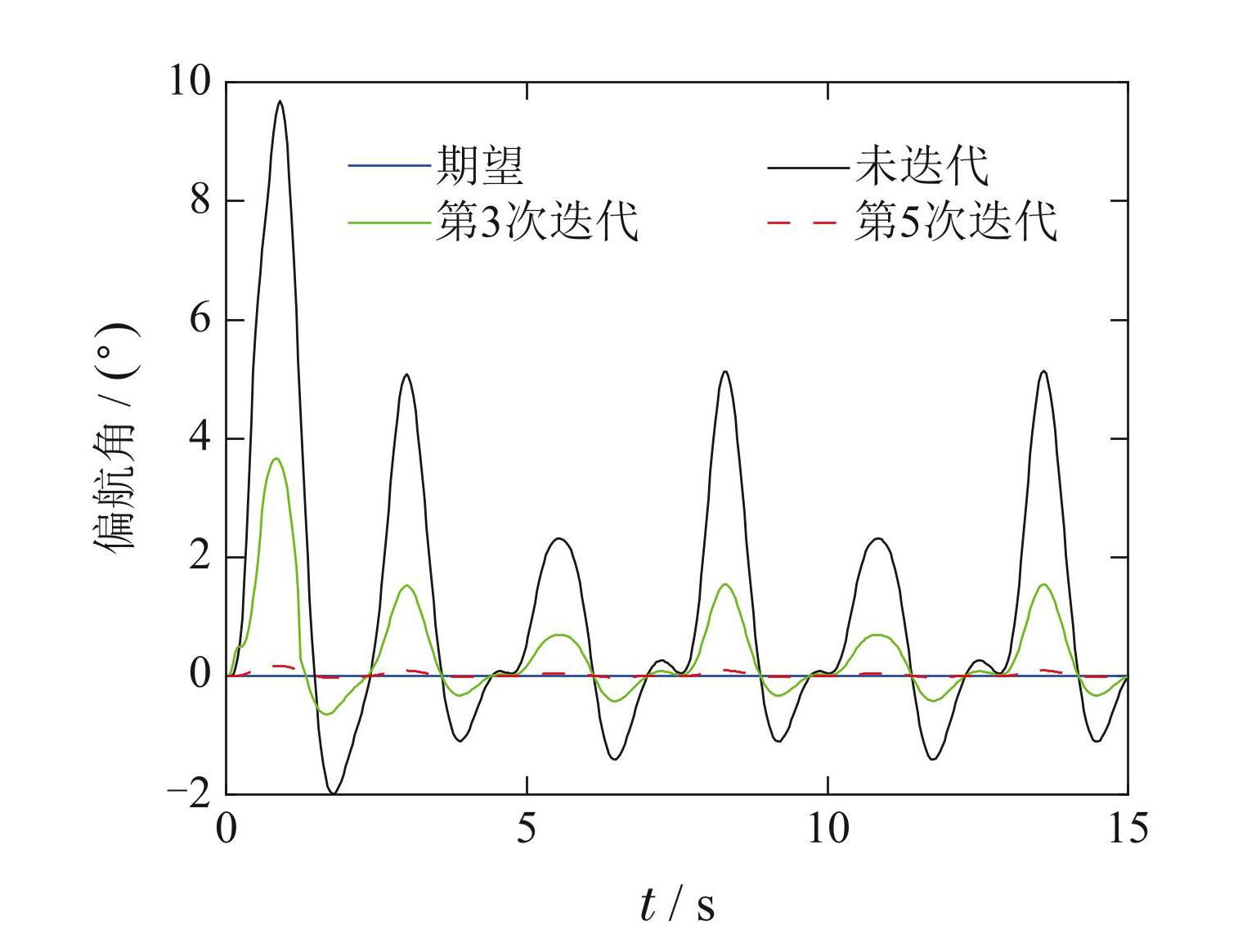 图5期望、未迭代和第3与5次迭代的偏航角轨迹