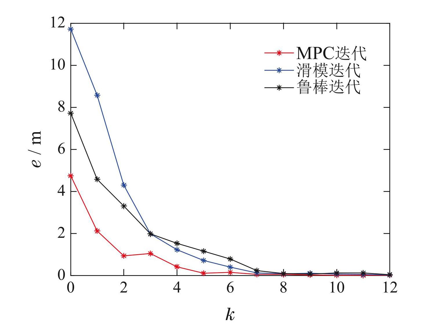 图6MPC迭代、滑模迭代与鲁棒迭代误差对比图