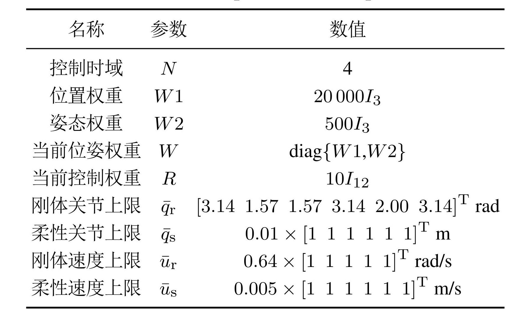 表1位姿控制仿真实验参数