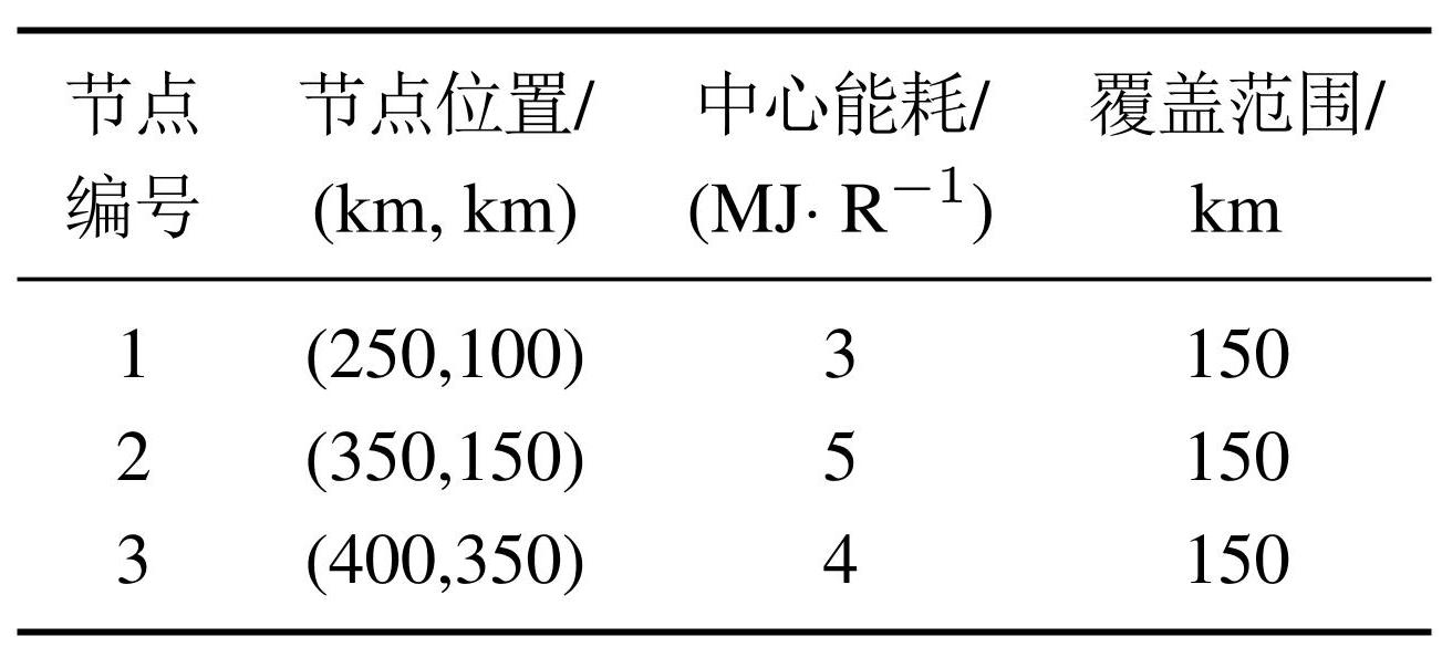 1)传感器网络中的每个节点位置信息都可以通过特殊定位算法获得. 现代传感网络技术已经发展出多种定位算法,如基于GPS、超宽带(ultra wide band,UWB)和多种定位算法(如三角定位等),能够有效获得节点的位置信息,因此该假设在技术上是可行的;