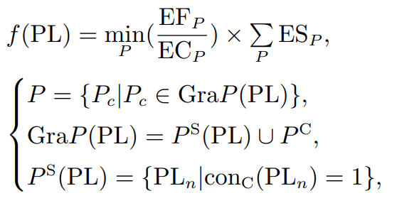 其中GraP(PL)为依据部署方案PL建立的感知网节点集. 该目标函数包含两个部分: 部署方案的预期生命周期与单周期内感知能耗总值,前者通过网络中节点最短生命周期进行表征,该项使方案向着节点负载更均衡方向优化; 后者通过网络中节点感知能耗值之和进行表征,该项使方案向着网络总感知量最大方向优化. 该目标函数综合了网络的总体感知信息量与内部节点均衡性,能够更好体现部署方案产生的综合效果.