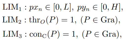 其中: LIM1为区域约束,功能节点的部署位置须在战场空间内; LIM2,LIM3分别为威胁约束与通信约束,即构成感知网的节点不在威胁区内且可与汇聚节点通信.