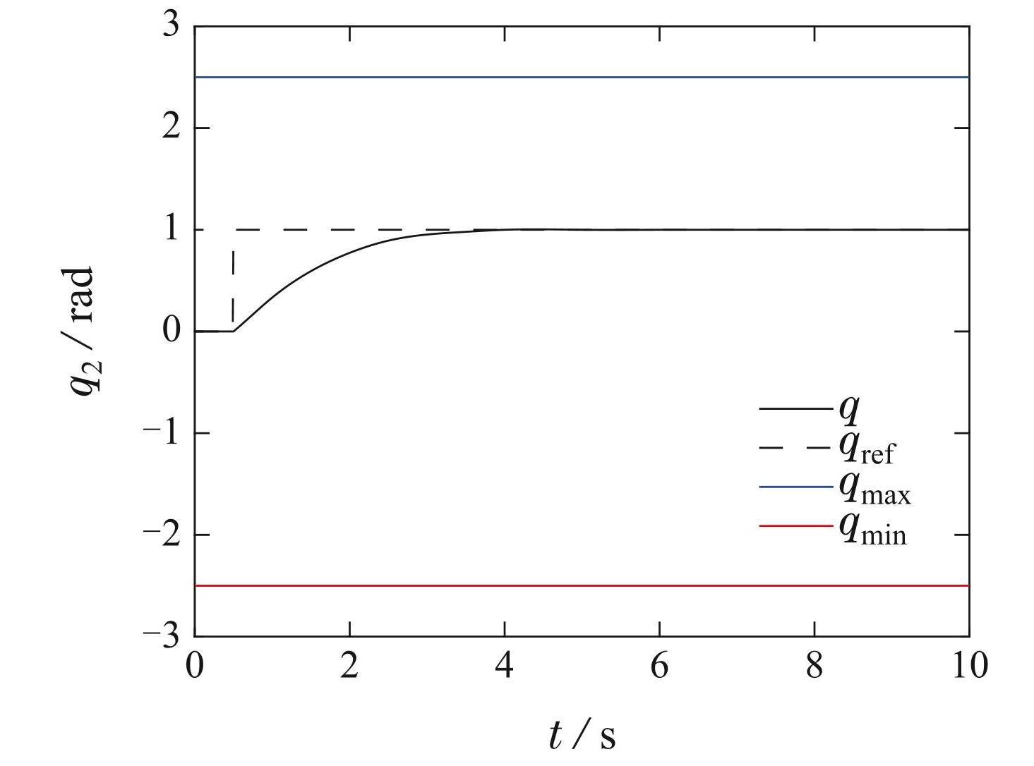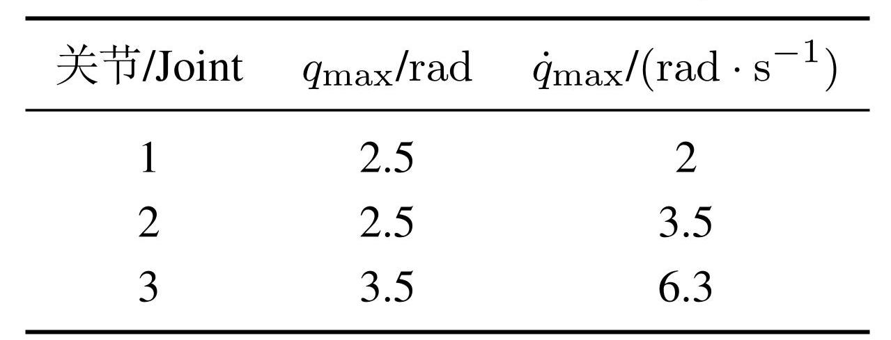 其中: θmin,θmax,,分别表示关节机械臂的最小允许角位移、最大允许角位移、最小角速度、最大角速度.