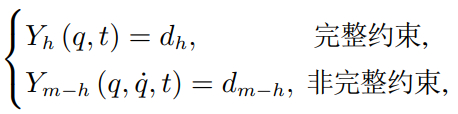 约束的一阶形式可以通过计算二阶约束(3)对时间t的积分或将等式约束(2)重写为以下形式得到:
