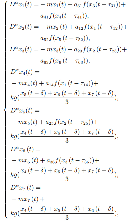 1)提出了一类高阶交互下具有环星型结构的分数阶时滞神经网络,构建了环星型三阶交互结构来模拟真实神经网络的架构;