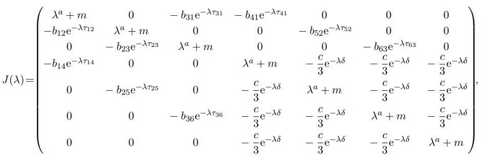 其中: bij = aijf′(0),c = kg′(0),i,j = 1,2,· · ·,7.