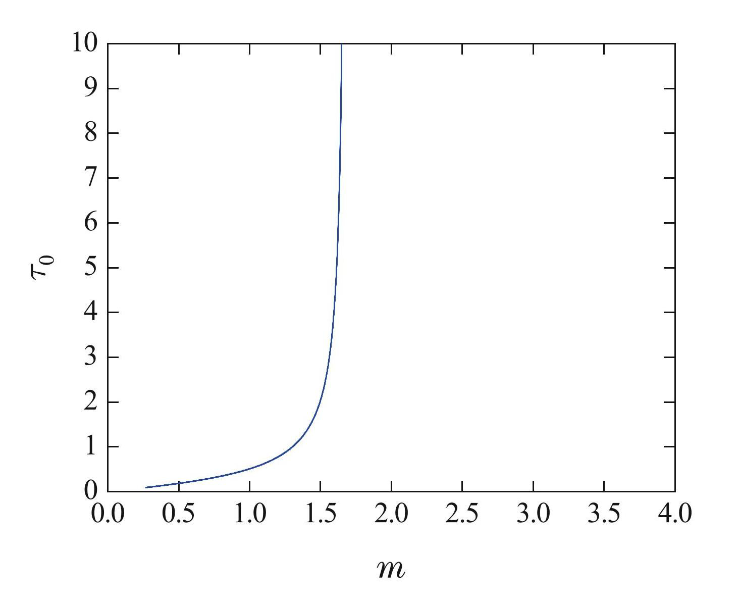 Fig.6The relationship curve between the self-feedback coefficient m and the bifurcation threshold τ0