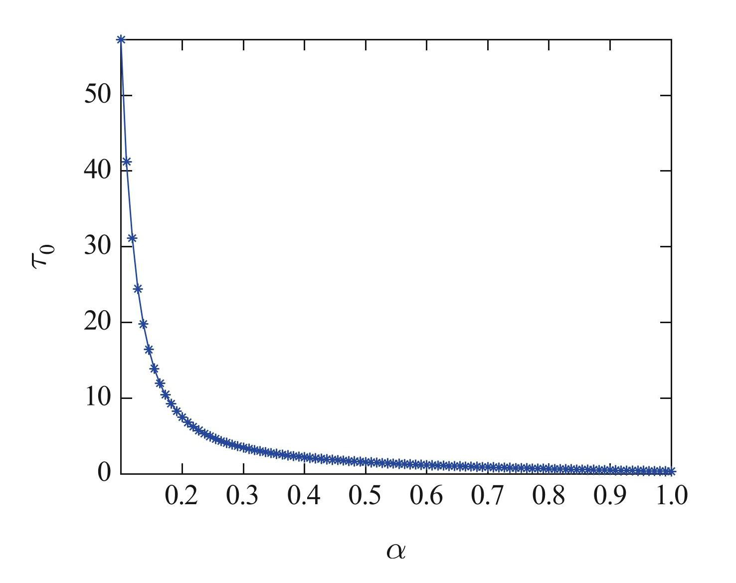 图7分数阶次α与分岔阈值τ0的关系曲线